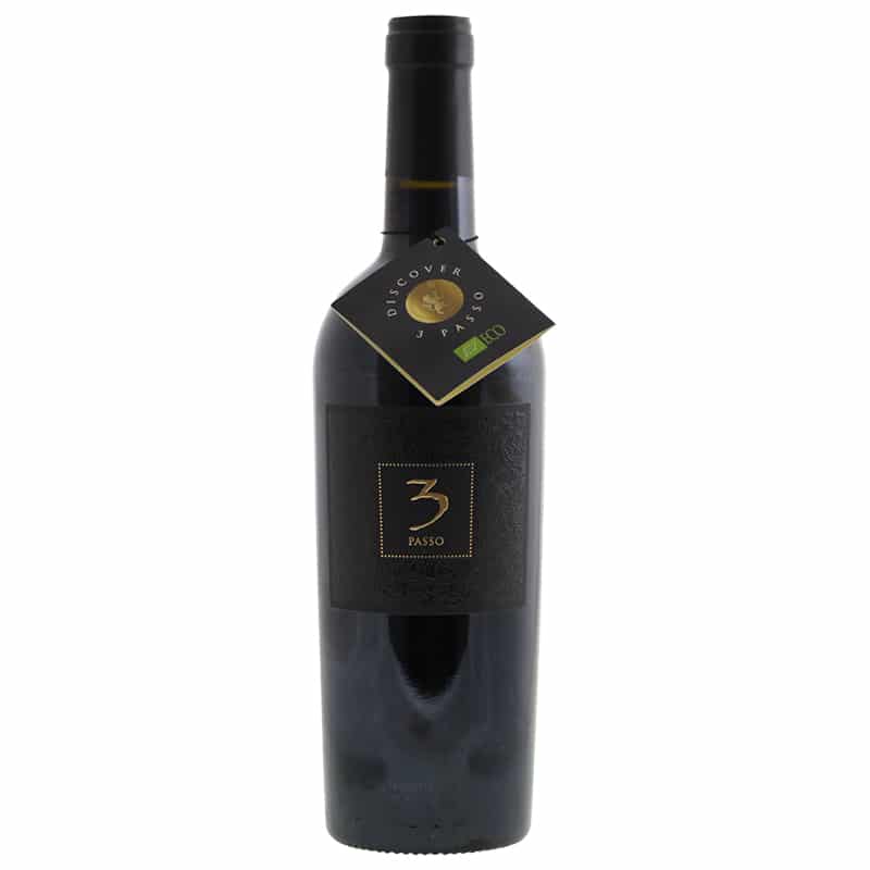 De 3 staat voor de drie druiven: Primitivo, Negroamaro en Sangiovese. Rosso voor rood en de Passo voor de speciale wijze waarop deze wijn gemaakt wordt, genaamd Appassimento. Hier blijven de druiven juist zo lang mogelijk aan de wijnstokken blijven, met als gevolg eenveel hoger suikergehalte. Nadat de druiven zijn geplukt worden deze in speciale kratjes gedroogd. Door het drogen verliezen de druiven een groot deel van hun vocht en het resultaat is een hoog concentraat aan suiker en aroma. Dit is dan ook de basis van de zeer smaakvolle Appassimento wijnen.